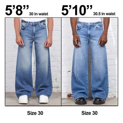 - Relaxed, Wide-Leg, Baggy jean with a Subtle Flare.