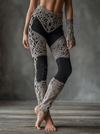 Vintage Viking Celtic Knot Art Knit Jacquard Cozy Leggings